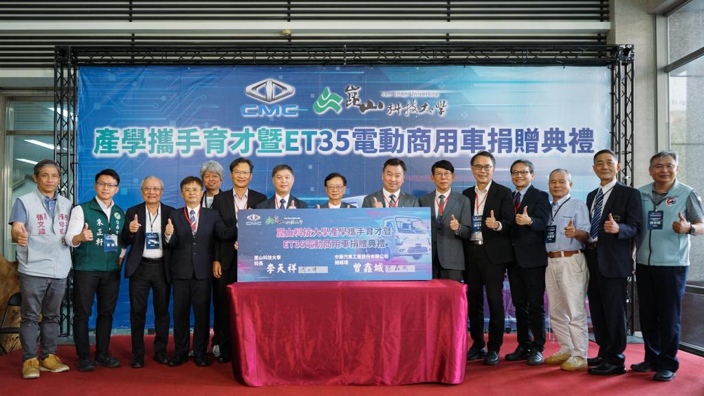 中華汽車曾鑫城總經理隨後表示,中華汽車捐贈ET35電動商用車,不僅是設備資源挹注,更是透過工研院與財團法人車輛研究測試中心技術合作,藉由產學攜手崑山科大培育關鍵技術人才重要展現;未來將與學校共同善用相關資源,結合公司相關技術、學校基地設備、模組化課程與實作場域,讓學生從車輛結構、動力系統、控制模組、電能管理到整車測試,進行更完整且貼近產業需求訓練,進一步提升跨域整合能力與職場即戰力。