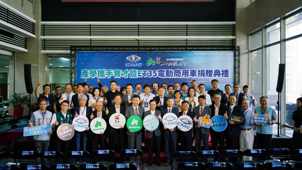 【勁報記者于郁金/臺南報導】崑山科技大學於17日盛大舉辦「中華汽車 ET35 電動商用車捐贈典禮」暨「崑山科大自行開發各式電動載具成果展」,校方與中華汽車同步簽署產學合作備忘錄(MOU),中華汽車並捐贈全台首部量產3.5噸電動商用車ET35給予校方,本次活動由教育部促進產學連結合作育才平臺計畫辦公室(台科執辦)協助辦理;此活動不僅象徵企業對技職教育高度支持,更代表雙方將共同投入高階技術人才培育,為臺灣綠色運輸轉型寫下新篇章。