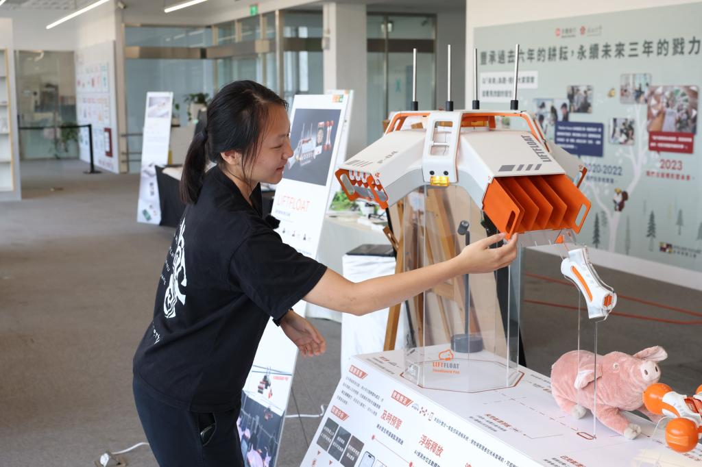永續系列主題作品「LIFTFLOAT畜牧淹水救災系統」,因應現今極端氣候、洪水來襲造成畜牧業者重大衝擊而設計,導入AI偵測水位高度,在情況危急時觸發「救生倉」放出儲備於內水上載體「漂浮板」,供豬隻攀附;該設計不改變既有場域結構,也非大型土木工程,並能減少災後沉重人力清運、消毒支出成本。