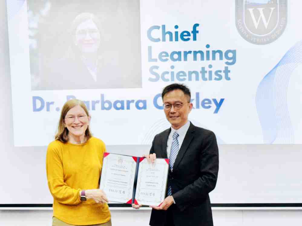 擁有數百萬學員的 Coursera 明星教師、暢銷書《學習如何學習》(Learning How to Learn)作者的全球知名學習科學專家Barbara Oakley 博士榮退教授,此次來台展開「臺灣實驗教育之旅」,不僅展現國際大師對臺灣教育創新的高度重視,同時,Oakley 博士更正式由崇智人文與教育基金會敦聘為「華頓首席學習科學家」,並見證代表崇智人文與教育基金會與國立陽明交通大學高等教育開放資源研究中心(HERO 中心)簽署產學合作備忘錄,開創腦科學與 AI 教育對接的新紀元。