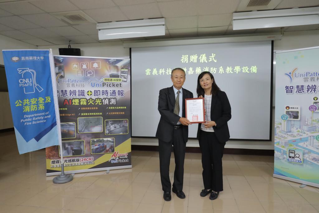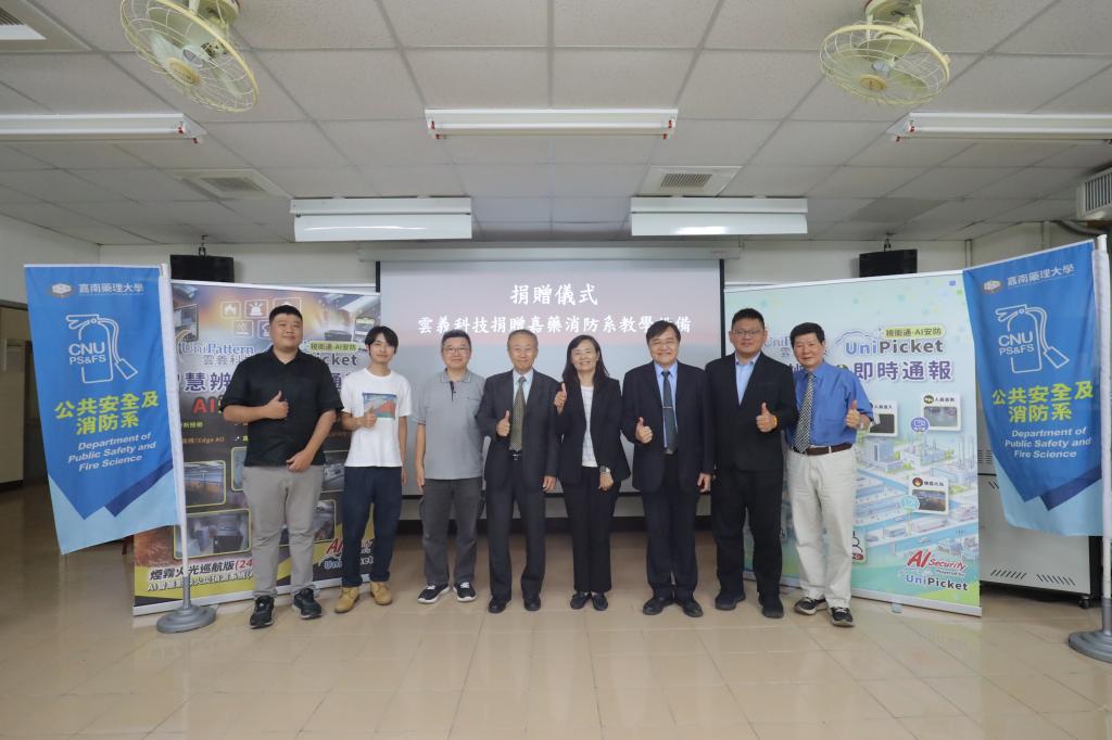 【勁報記者于郁金/臺南報導】隨著人工智慧(AI)技術在公共安全領域應用日益普及,嘉南藥理大學於23日在環境永續大樓隆重舉行與雲義科技公司合作備忘錄(MOU)簽署暨「UniPicket 視衛通AI影像辨識設備」捐贈儀式;由嘉藥副校長劉瑞美主持,宣布雙方未來將針對產業人才培育與智慧防災研究展開深度合作;此次獲贈先進AI影像辨識系統將直接導入教學現場,全面提升學生科技防災實力,引領臺灣防災技術邁向智慧化轉型。