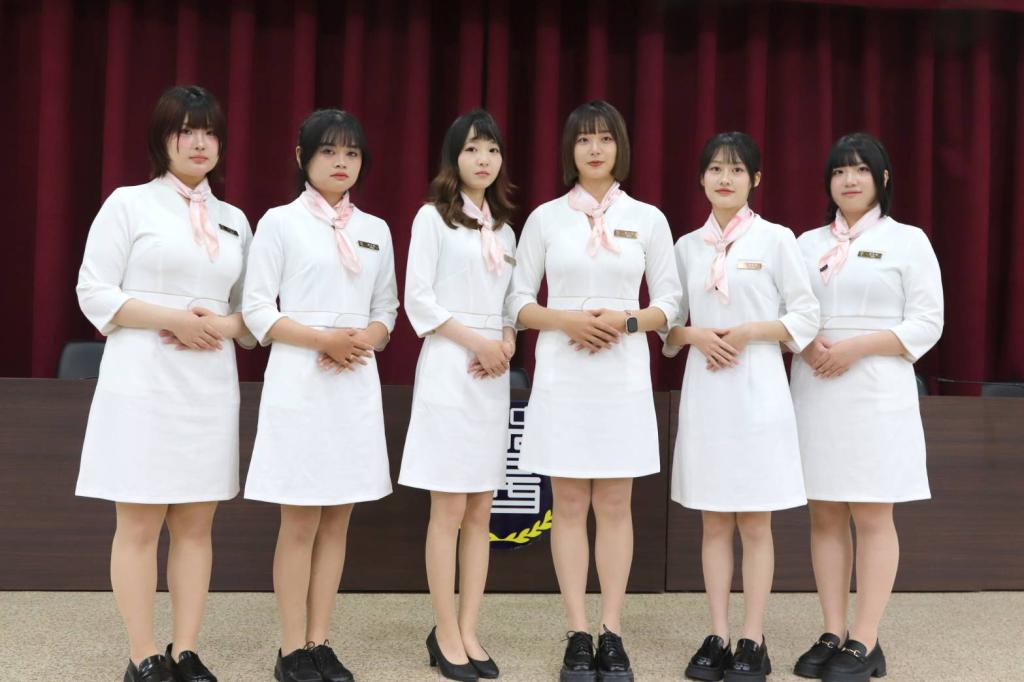系主任林麗英表示,中華醫大生物醫學及美容保健科系於110年成立並對外招生,這是首屆接受授服繫巾儀式學生,總共有41人;有別於跟一般醫療相關行業制服不同,學生實習制服以淨白為主調,領口與腰間鑲嵌精緻金邊,剪裁合身,象徵醫學美容嚴謹專業與卓越品質;搭配印花粉彩領巾,為俐落剪裁增添溫潤親和力,更展現出學生由校園邁向醫美診所與頂級 SPA館職人形象,以優雅儀態與精湛技術,即將投入醫美業第一線服務。