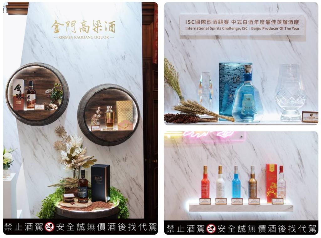 金酒說明,臺灣烈酒龍頭金門酒廠,今年於四大國際烈酒大賽(ISC國際烈酒競賽、SFWSC舊金山世界烈酒競賽、MS比利時世界品質評鑑大賞、IWSC英國國際葡萄酒暨烈酒競賽)奪獎大滿貫,盡展璀璨風采,勇奪77面獎牌與獎盃,更奪下ISC年度大獎「中式白酒年度最佳蒸餾酒廠」美譽,為國爭光!於臺北賓館舉辦國慶晚宴中,獻上誠摯祝福;席間展示多款在國際烈酒大賽嶄露頭角奪金的酒款,包括今年於SFWSC舊金山世界烈酒大賽初試啼聲即拿下金獎和雙金獎瓏時金門高粱酒系列,包括《0.6L-58.8度「磚紅厝」/金獎》、《0.6L-57.1度「暖白霧」雙金獎》、《0.6L-55.2度「海洋藍」/雙金獎》、《0.6L-59.9度「高粱金」/金獎》4款,以描繪金門四季景緻為題,金門風土底蘊在國慶晚宴隨酒香飄揚,吸引外國使節嘉賓一探其迷人風貌。