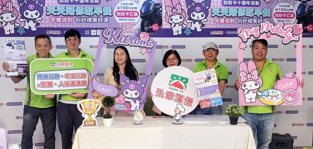 (勁報記者胡光輝/新北報導)台灣早午餐加盟第一品牌弘爺漢堡,歡慶刮刮卡活動十週年,宣布自10月15日起至12月15日,攜手日本三麗鷗旗下超人氣角色「美樂蒂」與「酷洛米」,推出年度限定「天天陪你吃早餐」刮刮卡活動。凡消費滿百即可獲得限量刮刮卡乙張,張張有獎,總獎品數量高達400萬份,創下品牌歷年新高。
