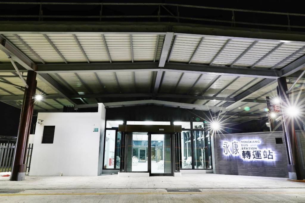 局長王銘德表示,永康轉運站基地面積約0.5公頃,雖受限於土地使用規定,室內建築面積僅約231平方公尺,但仍精心規劃舒適的售票與候車空間,整體設計簡潔俐落,融合太陽能光電棚架與綠色工法,搭配首次採用「淺鋸齒式月台」,環形車道動線讓國道客運與市區公車整合轉乘更順暢,轉運站上方大型太陽能頂篷不僅遮風避雨,更具備約300kWP發電量,達成節能減碳目標。