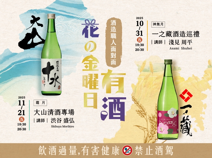 備受好評的「花の金曜日」日本酒餐酒會,年末最終兩場即將登場!無二會所攜手東北百年酒造——「一之藏」與「大山」帶來專屬釀酒風土巡禮,搭配精心設計的在地餐食套餐,讓每位賓客親身體驗餐酒搭配的極致風味。(禁止酒駕 未成年請勿喝酒)