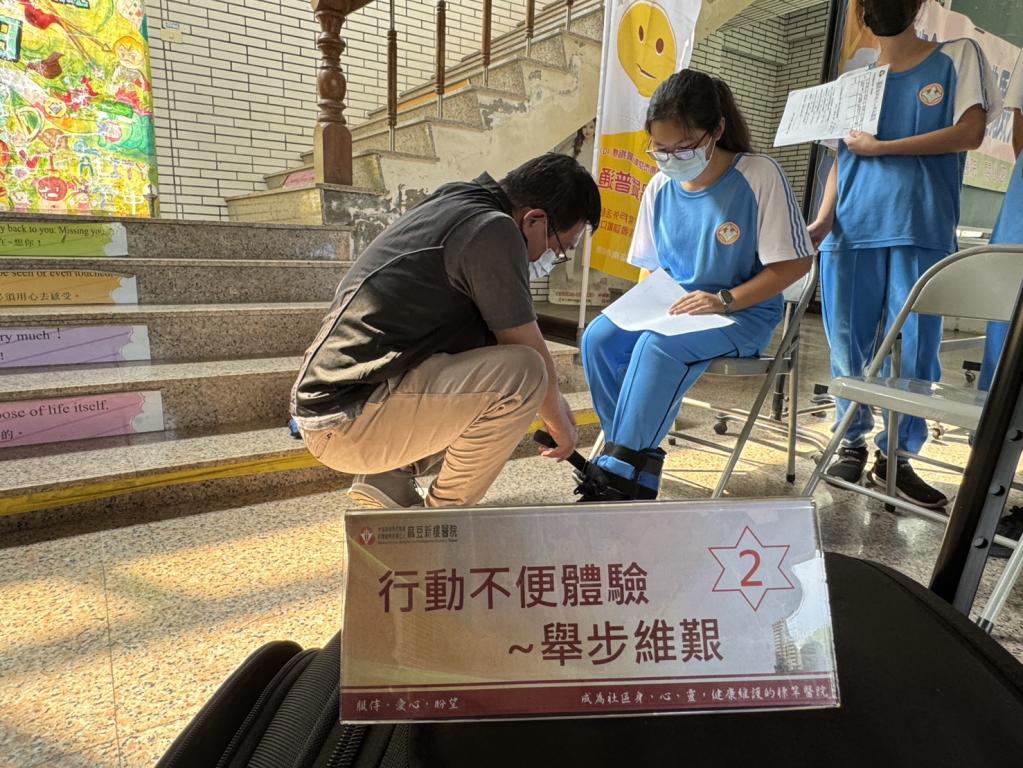麻豆新樓醫院高齡友善小組與社區健康中心特別為官田國中學生設計一系列沉浸式體驗關卡,首先穿戴體驗裝置感受長者不便,學生們需穿戴模擬裝置,包括限制視覺老花眼鏡、增加負重與限制關節活動護具等,以親身模擬高齡者在日常生活中面臨困難,如視力模糊、行動遲緩、手部靈活降低體驗還有節能減碳宣導等。