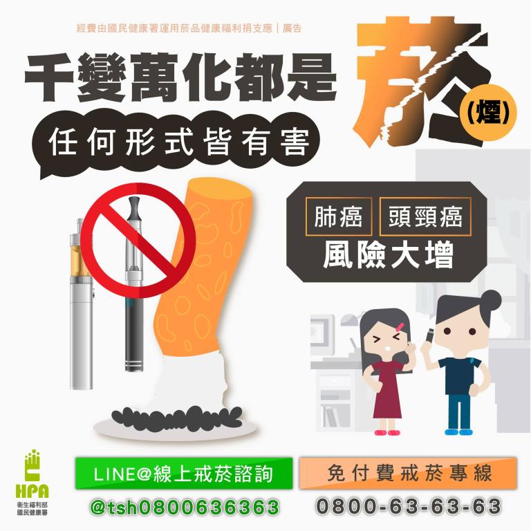 衛生局說明,多數民眾常會誤以為使用加熱菸或電子煙產品較無危害,其實兩者主要差異為加熱菸是加熱菸草柱來釋放尼古丁,而電子煙則是加熱液體煙油來產生煙霧,無論是電子煙或加熱菸同樣都會產生焦油和尼古丁等危害物質;世界衛生組織(WHO)指出,任何形式菸品(含加熱菸)或電子煙都是有害的;菸害防制法也全面禁止電子煙在內之各式類菸品製造、輸入、販賣、供應、展示、廣告及使用。