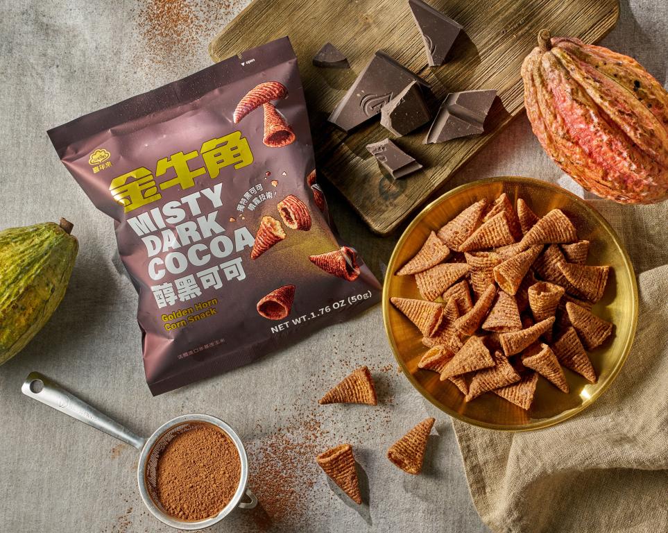 「金牛角 - 噴霧醇黑可可」則是經典金牛角的全新升級版,採用獨家「噴霧工法」,將濃郁黑可可輕薄均勻地覆裹於酥脆餅體表面,實現不黏手、低甜膩的食用體驗。一口咬下,餅體的輕盈酥脆與黑可可的濃郁香氣完美交融,帶來滿滿療癒感,為熟悉金牛角的消費者提供全新感受。