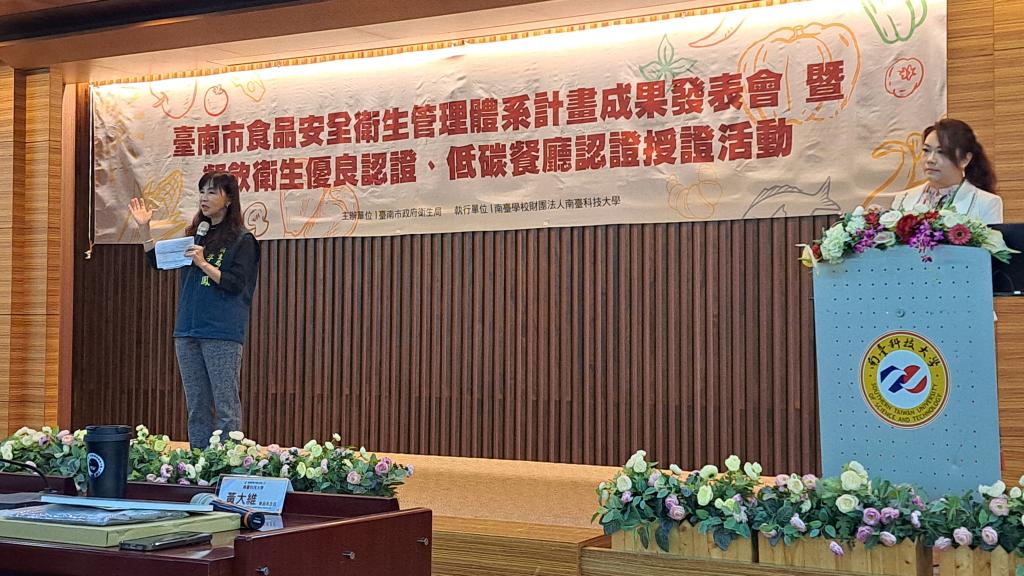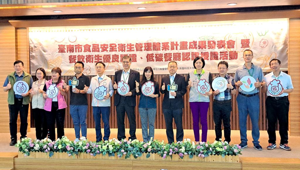 【勁報記者于郁金/臺南報導】臺南市政府衛生局於7日假南臺科技大學E棟修齊大樓13樓國際會議廳舉辦「114年度食品安全衛生管理體系成果發表暨餐飲衛生優良店及低碳餐廳認證授證活動」;本次活動由衛生局主辦、南臺科技大學協辦,由衛生局局長李翠鳳親臨現場致詞與頒獎,並與南臺科技大學王振乾副校長協同地區各公會,親臨典禮會場鼓勵獲獎業者,展現市府對餐飲業者積極落實食安自主管理與低碳飲食行動高度重視。