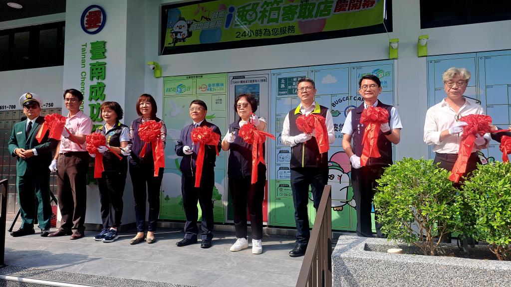 【勁報記者于郁金/臺南報導】臺南成功路郵局i郵箱寄取店於11月17日正式啟用!提供全天候自助寄取件服務;啟用典禮邀請總公司郵務處長官、北區區長潘寶淑、西區區長蔡佳甫、北區公園里里長徐富美、南紡購物中心副總經理楊鈵彥、台南大飯店陳育偉總經理及郵件大宗客户等貴賓,共襄盛舉;典禮首由北區開元國小舞獅隊帶來舞獅表演揭開序幕,而後由貴賓共同進行剪綵儀式,更有i郵箱操作體驗活動,當日寄件、取件都有神秘好禮大放送。