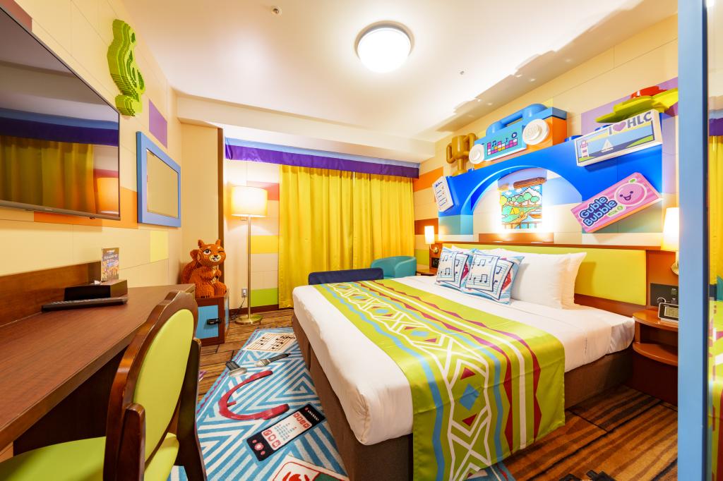 前往日本樂高樂園度假村遊玩時,也可以選擇入住深受小朋友喜愛的「日本樂高樂園酒店」(LEGOLAND® Japan Hotel)。位於日本樂高樂園正門前,日本樂高樂園酒店從外觀到内部細節都呈現了獨特的樂高積木世界觀。