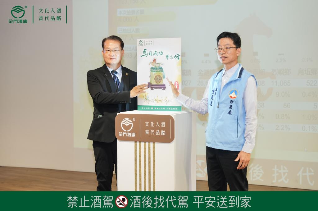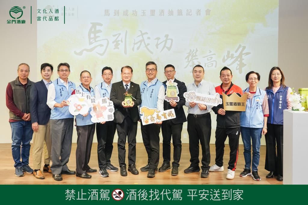 【勁報記者于郁金/金門報導】千呼萬喚,壓軸鉅獻!金門酒廠隆重推出2026丙午年「馬到成功」玉璽酒,為自2015年「羊名天下」玉璽酒開始逐年逐款推出生肖玉璽酒系列,劃下跨越長達12年完美終章;金門酒廠為回饋金門縣民,2026年「馬到成功玉璽酒」延續抽籤價購方式辦理,於11月25日上午10時於金門酒廠多媒體簡報室舉行發佈記者會,在縣府長官、律師及資訊專家學者等見證下,由金門縣政府財政處處長陳國庭及金門酒廠董事長吳昆璋啟動抽籤儀式,透過電腦亂數隨機抽出4,000位幸運縣民,得以價購1盒,符合抽籤資格的縣民莫不期待自己就是那位幸運兒,可以將「馬到成功」玉璽酒馬上成功帶回家。