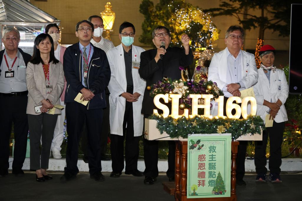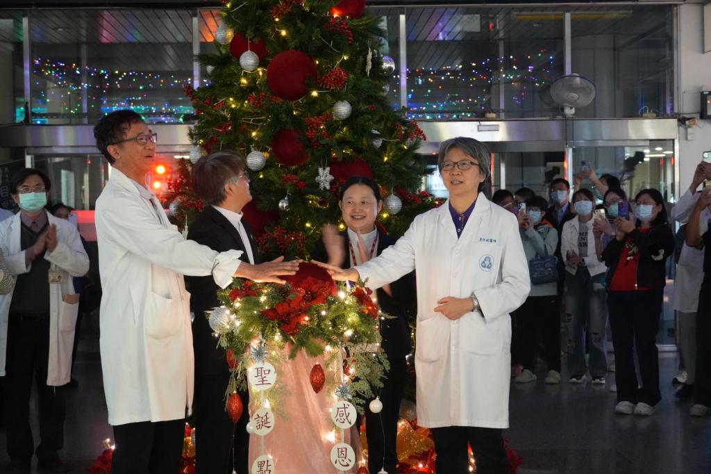 院長劉啓擧指出,聖誕點燈不僅是點亮聖誕樹,更是啟動本院新視野開始;也在此感恩上帝帶領,感恩祂的保守,感恩祂在這些年將祝福傾倒在新樓;今年兩院同步點燈,象徵新樓醫院兩院凝聚力;運用現代科技,強化院際合作,讓醫療服務更有效率、更貼近民眾需求。