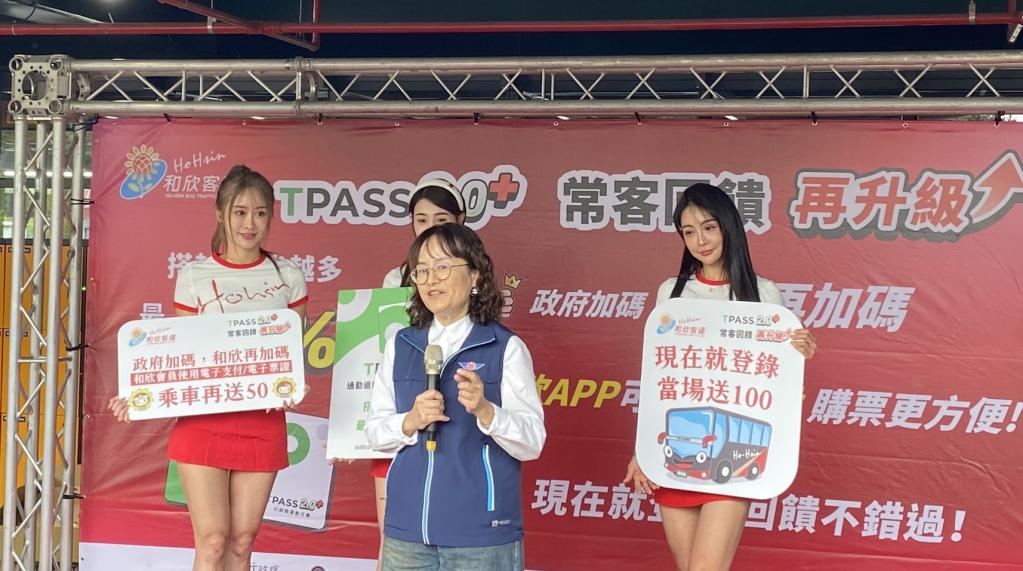 此外,和欣客運公司在29日上午於臺南轉運站舉辦「TPASS 2.0+常客回饋再升級」快閃活動,除現場提供有獎徵答及打卡活動外,也宣布響應TPASS 2.0+加碼優惠,即日起至114年12月1日,於臺北轉運站、臺中朝馬站、臺南轉運站、高雄建國站現場完成TPASS票證登錄,即可領取100元折價券,另於12月1~14日期間使用TPASS搭乘和欣客運國道路線者,於乘車後次日將自動發送50元折價券。