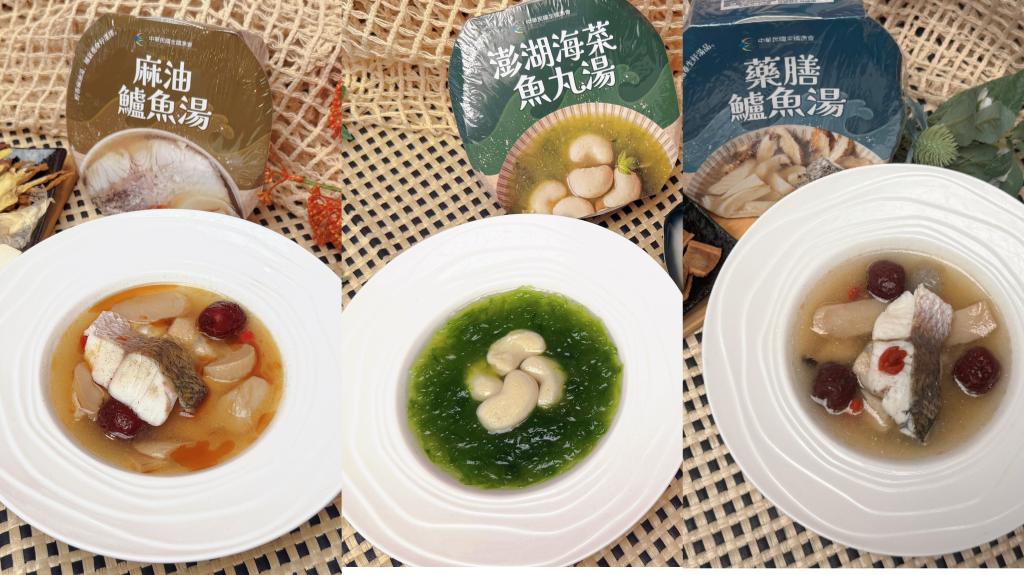 漁業署與全國漁會指出,本次為兼具便利與養生特色,只需結帳、加熱即可食用,滿足忙碌上班族及小家庭的需求,強強聯手推出三款加熱即食湯品皆嚴選優質國產水產品,兩款鱸魚湯品各展不同風味,『藥膳鱸魚湯』入口溫潤不燥、『麻油鱸魚湯』薑韻交疊麻油香,暖而不膩;還有來自澎湖在地『澎湖海菜魚丸湯』,湯頭清甜、魚丸Q彈,老少皆宜。