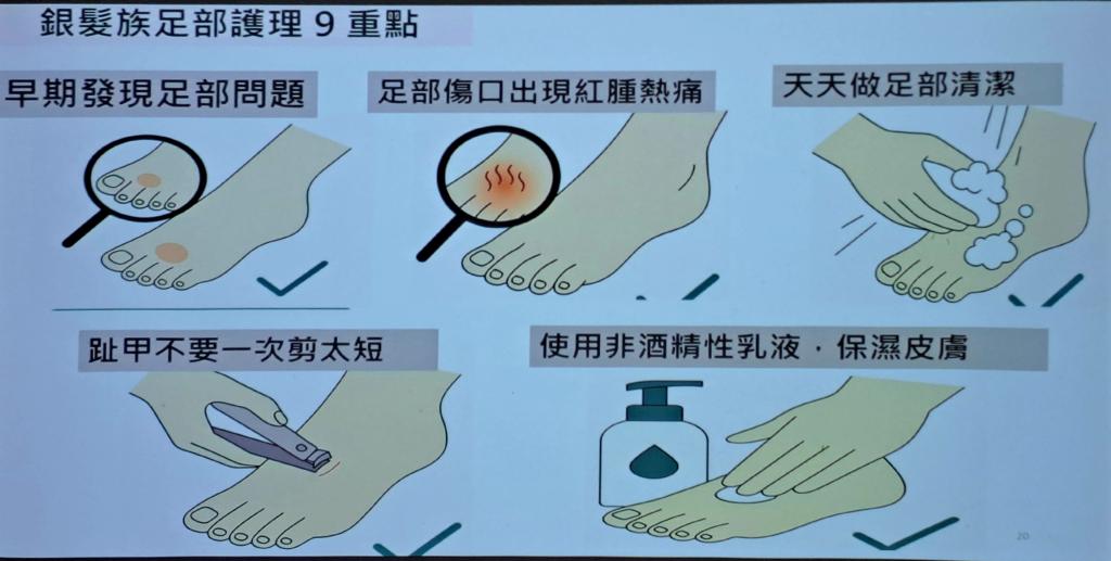 臺灣高齡化社會下銀髮族為糖尿病高風險族群,血糖控制不佳會進一步增加糖尿病足部併發症風險;因此,防治重點不應僅停留在治療階段,更應往前移至「一級預防與潰瘍緩解期(remission phase)」積極照護;「規律的足部檢查、良好血糖控制與專業足部護理介入」是協助糖尿病病人避免截肢關鍵策略。(于郁金攝)