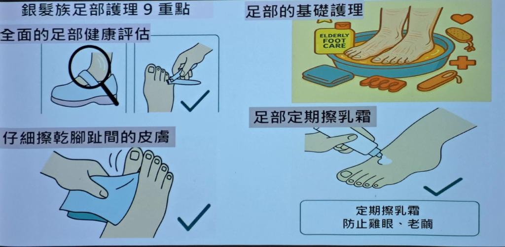 奇美醫院傷口暨足部護理師魏秀慧表示,因應臺灣邁入超高齡社會帶來足部健康照護需求,奇美醫療財團法人奇美醫院於2025年創新成立「專業足部護理照護」團隊;這項服務由醫師、足部護理師、傷口護理師、糖尿病衛教師等跨專業成員共同組成,為住院與門診個案提供全方位、個人化足部健康服務;這項服務內容涵蓋足部健康檢查、問題趾甲處置、糖尿病足部預防衛教與復健運動指導,並採個案管理模式,必要時轉銜長照資源;截至10月已累計服務364人次,成功幫助長輩解決多年困擾,重獲行動自由。