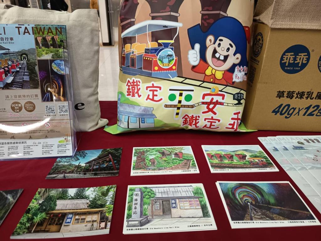 ▲苗栗年度壓軸大型活動-「2025苗栗耶誕城」在苗栗縣政府一辦大廳隆重舉行宣傳活動。圖係「苗栗舊山線鐵道自行車」攤位。