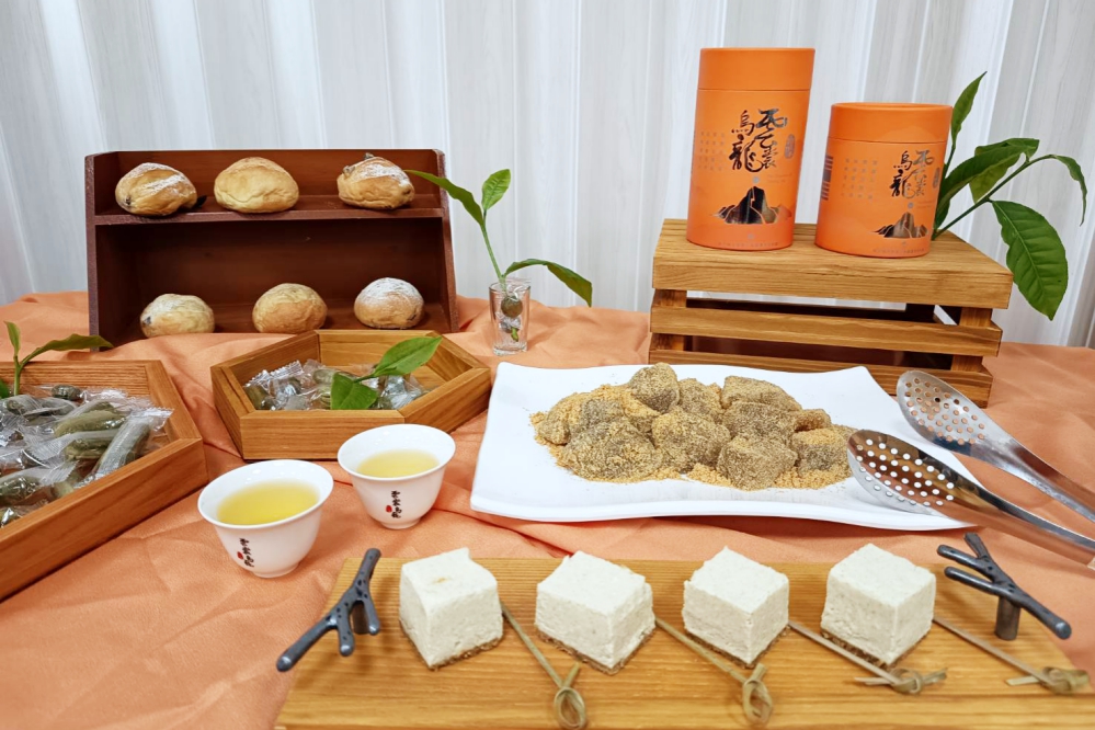 ▲第七屆新竹縣原鄉經濟作物冬季高山烏龍茶優良茶評鑑暨頒獎典禮,現場備有雲裳烏龍茶與茶點。