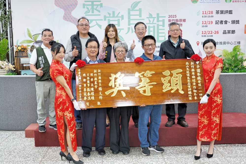 ▲第七屆新竹縣原鄉經濟作物冬季高山烏龍茶優良茶評鑑暨頒獎典禮,甲子園茶廠榮獲頭等獎。(圖/竹縣府提供)
