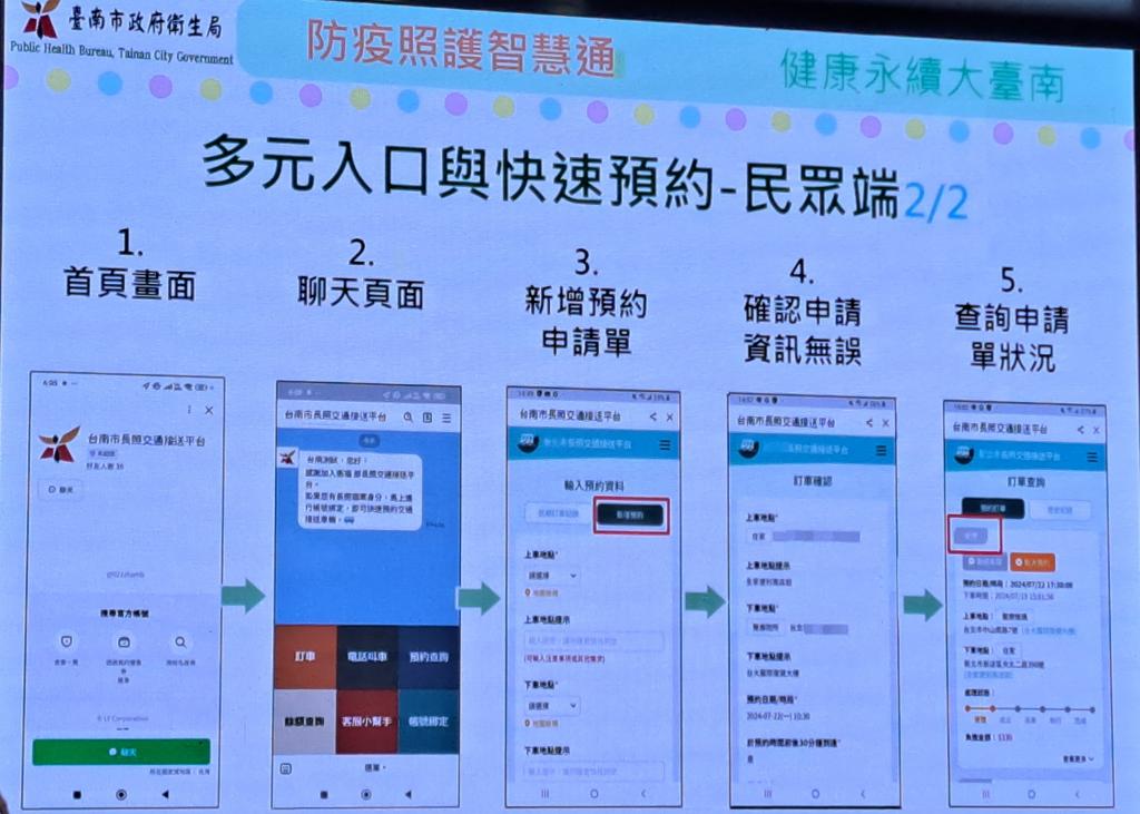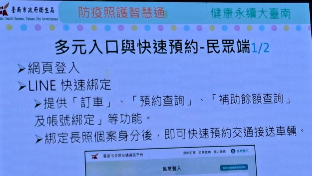 開發長照接送「銀髮E路通」預約平台明年上線:因應長照交通需求愈來愈高,衛生局宣布將建置「銀髮E路通」數位平台,提供網頁與LINE預約功能,強化派車、調度與車輛管理,提供「更快媒合、輕鬆叫車」長照接送服務。