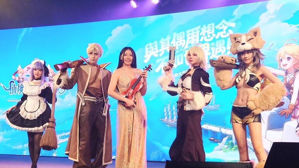 記者會現場也安排 Cosplay 走秀與小提琴演出,透過沉浸式的視聽呈現,提前帶領來賓走進奇幻的米德加茲大陸。