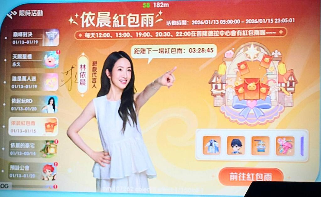 林依晨表示,自己與《RO仙境傳說》同樣於 2002 年出道,至今已走過 24 年。她感性分享,演員是在不同角色中體驗人生,而玩家在普隆德拉結交夥伴、挑戰副本、共同成長的過程,其實有著相同的投入與感動。她也預告,將在遊戲中定時降下「紅包雨」,玩家可接取專屬挑戰活動,拜訪她的家園,獲得限定稱號與特色時裝。