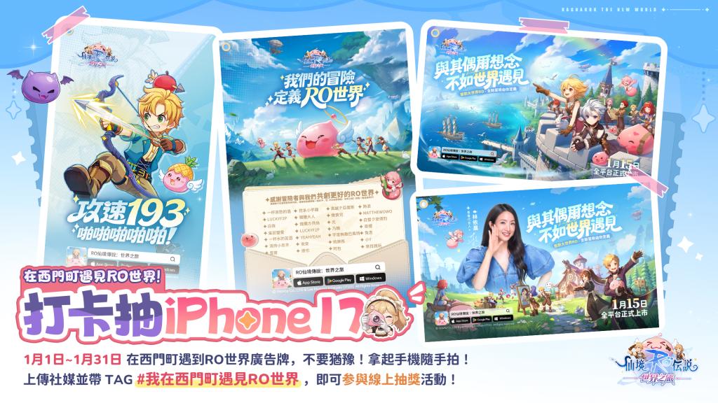 《RO仙境傳說:世界之旅》將於 1 月 15 日正式上線。為慶祝上市,官方將於西門町展開大規模宣傳,並同步舉辦社群抽獎活動;後續也將與清原推出期間限定聯名飲品,並預告重磅參展 2026 台北國際電玩展,邀請玩家一同展開全新的冒險旅程。