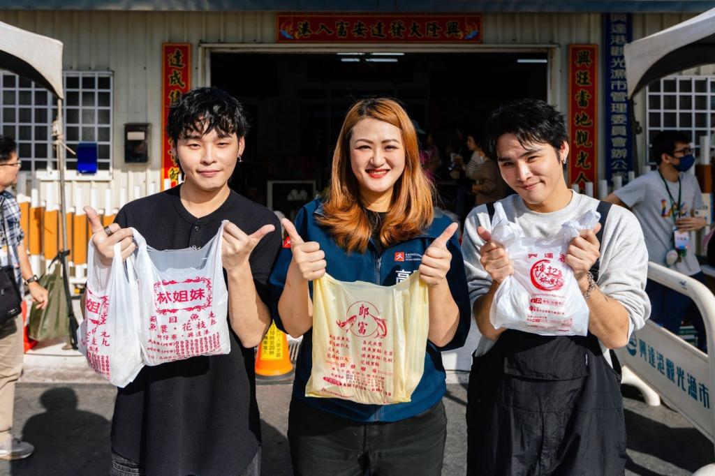 圖/活動當天茄萣興達港魚市陳記姑嫂魚丸大方加碼贈送魚丸Q彈好吃大受好評。觀光局長高閔琳(中)