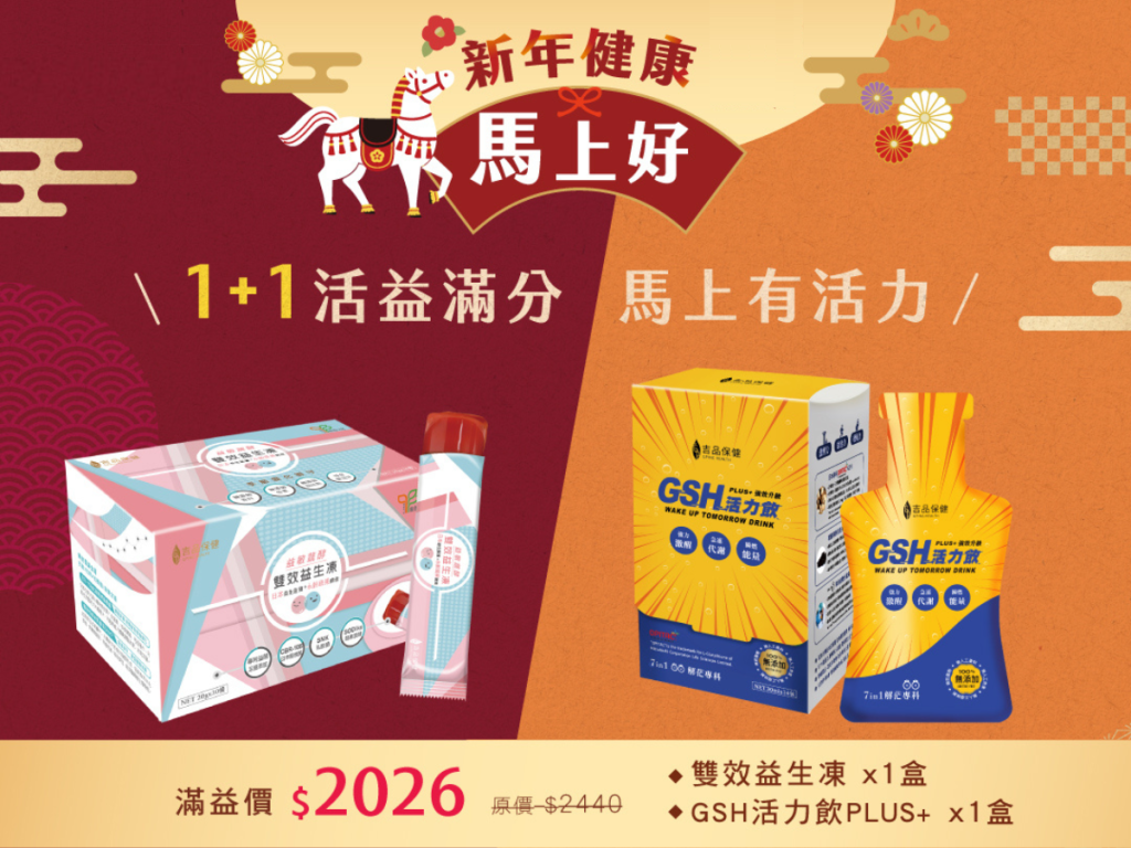 春季講求「生發」,氣候多變易感春睏。無二會所也推薦以無添加、食物型態的保健食品溫和補充營養。吉品保健「GSH活力飲PLUS+」含穀胱甘肽、B群、紅球薑與薑黃,幫助啟動代謝;「益敏蔬效雙效益生凍」則以日本專利雙益生菌搭配紅球薑,調節體質、提升換季適應力。訪客可於用餐時搭配選購,讓春光由內而外自然綻放。