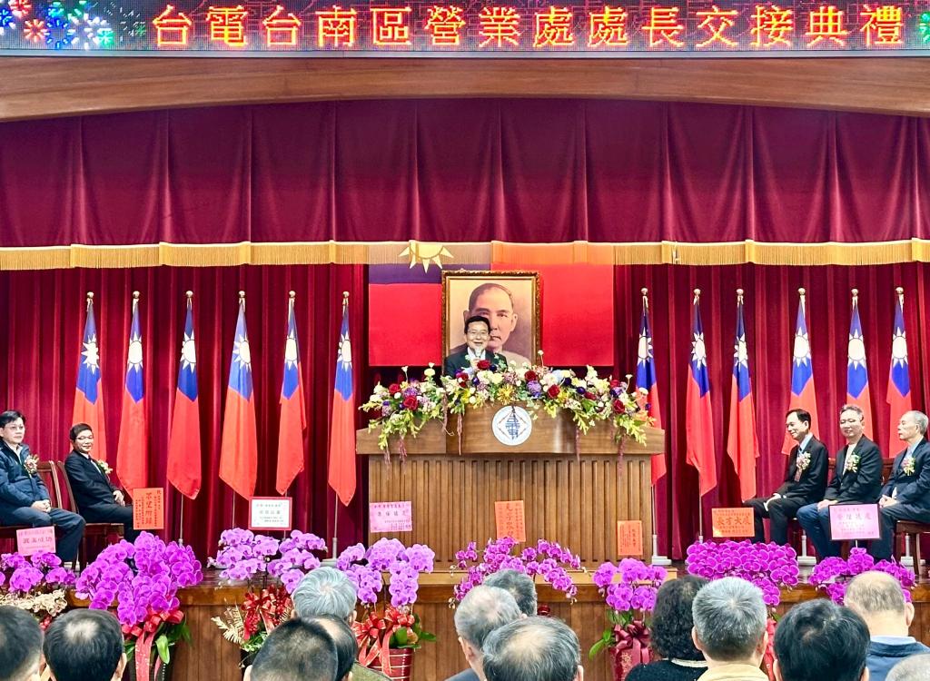 【勁報記者于郁金/臺南報導】台電台南區營業處16日舉行新、卸任處長交接典禮,由原北北區處廖學智副處長接任,原任處長黃明舜調任鳳山區營業處處長,交接儀式在台電公司黃銘宏專總監交下,廖學智由黃明舜手中接下印信,並宣誓就任台南區營業處處長;臺南市政府財稅局李建賢局長、台灣區電氣工程工業同業公會理事長張麗在、中華電信臺南營運處總經理蔡旻宏、台灣自來水公司第六區管理副處長王年鑫等貴賓皆到場觀禮祝賀。