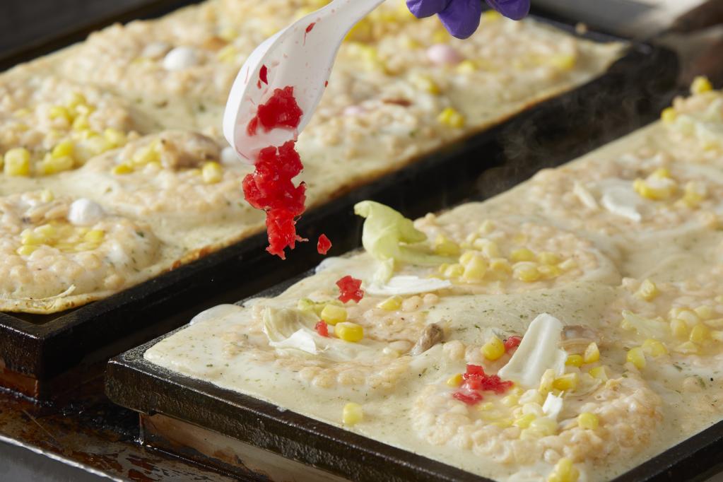 為完整呈現池袋原味,「爆彈燒本舖」台灣首店堅持進口品牌靈魂醬汁,並一次帶來日本原店 15 種口味選擇,包含「原味巨無霸」、「旨辛醬」、「明太子」、「卡滋天婦羅碎」等。招牌「原味巨無霸」以黃金比例的爆彈燒基醬搭配美乃滋與柴魚碎,甜酸交織、層次分明;「旨辛醬」則以日式前酸後辛風味呈現,亦可加價升級起司瀑布,視覺與味覺雙重享受。