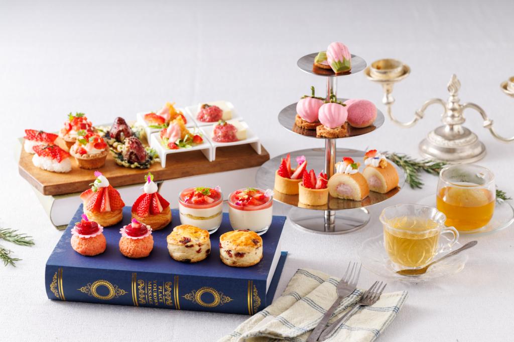 除了烘焙坊的甜點風景,主廚黃伯欽也將草莓季延伸至一樓「月台町」,推出草莓季雙人下午茶。以冬日最令人期待的草莓為主角,14 款鹹甜點心錯落上桌,從草莓覆盆子塔、玫瑰荔枝草莓泡芙,到草莓蝦球、炸草莓天婦羅與草莓握壽司,鹹甜交織,為午後時光注入驚喜與話題感,搭配茶或咖啡,讓甜點成為一場值得慢慢享受的生活儀式。