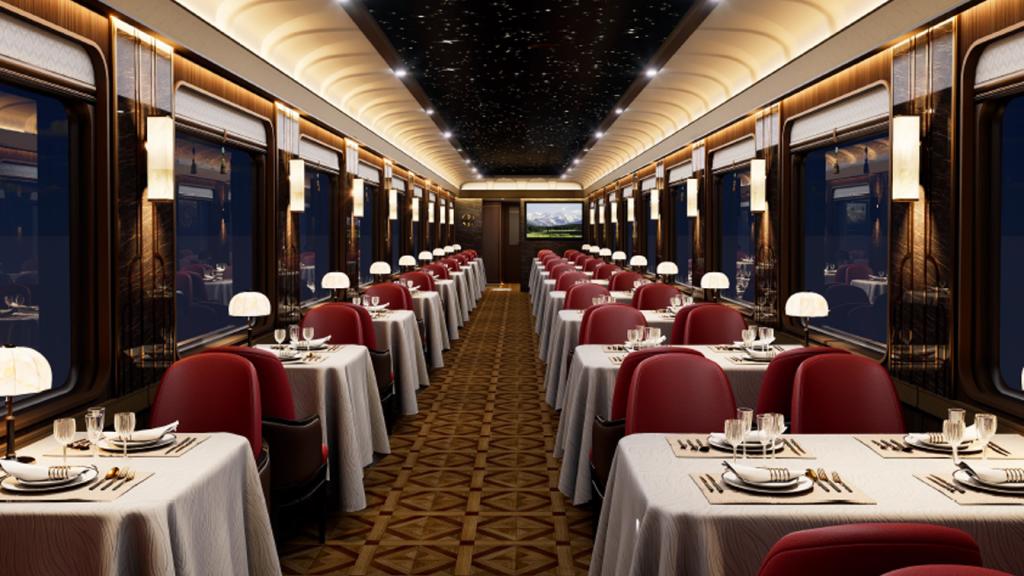 新東方快車全列共18節車廂,包含餐車、酒吧車廂、廚房車廂、發電車廂等多元配置,首航僅限約100名貴賓搭乘,稀缺性十足。列車套房分為「至尊金鑽」、「璽悅金鑽」及「鉑悅金鑽」三種房型,每間皆配備獨立衛浴,兼顧隱私與舒適。隨行服務團隊約50人,包含醫師、攝影師及專業管家,達到二對一的尊榮服務規格,提供細緻周到的旅程體驗。