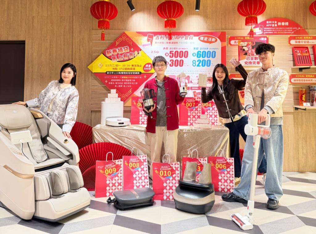 今年春節檔期亦週週準備多款實用且富含年節祝賀寓意卡友/會員新春禮,活動期間親持吉利卡或出示APP會員條碼+本館/二館或驛站商場當日累計消費滿500元之同卡號發票+指定現金即可兌換限定新春來店禮乙份。