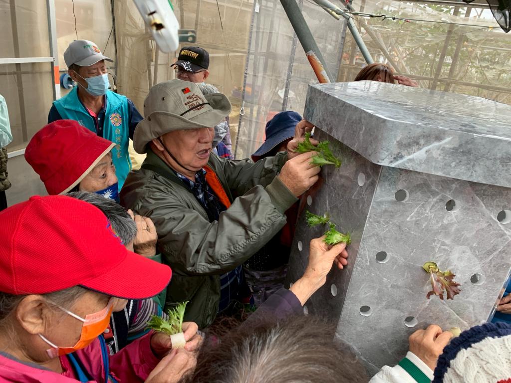 長輩對這種推翻大家過去認知的智慧氣霧栽培,直呼不可思議,大家爭相試種菜苗,好不開心;吳場長也提供體驗採摘無花果,長輩彷彿又回到童年時期採果樂趣。