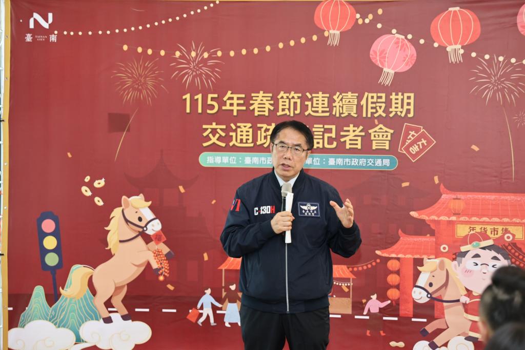 【勁報記者于郁金/臺南報導】為迎接2月14日至22日9天春節連續假期,臺南市長黃偉哲6日於和順轉運站舉辦記者會,宣布南市各項春節交通疏運整備,除提前整合各單位研擬疏運計畫,鎖定熱門景點與主要幹道強化車流管理與旅運服務,並提供即時交通與停車、公車資訊,協助市民與遊客安心走春、順暢出遊。