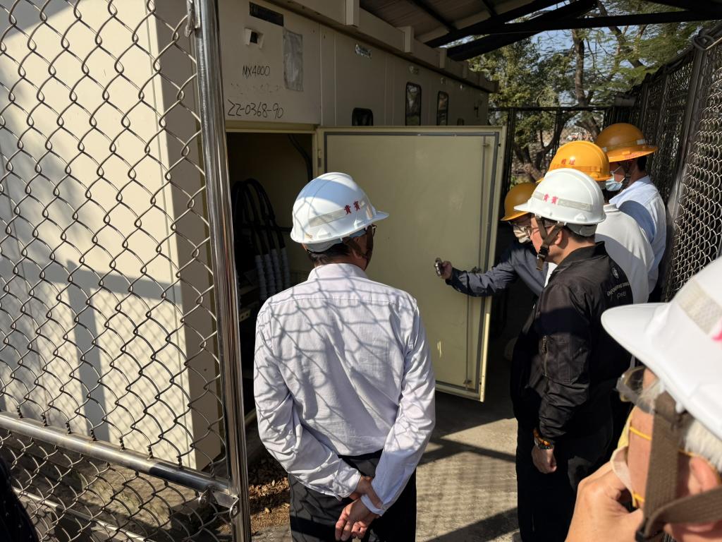 【勁報記者于郁金/臺南報導】農曆春節假期將至,為確保國人返鄉、出遊及醫療照護期間用電穩定,台電於春節前陸續針對大眾運輸場站及醫院用戶設備啟動專案檢測;10日由台電新營區處黃啓通處長率領同仁親赴柳營奇美醫院,與奇美醫院院長周偉倪及院方團隊共同會勘,瞭解醫院目前供電情形,透過技術交流與合作,共同提升重要公共設施用電穩定。