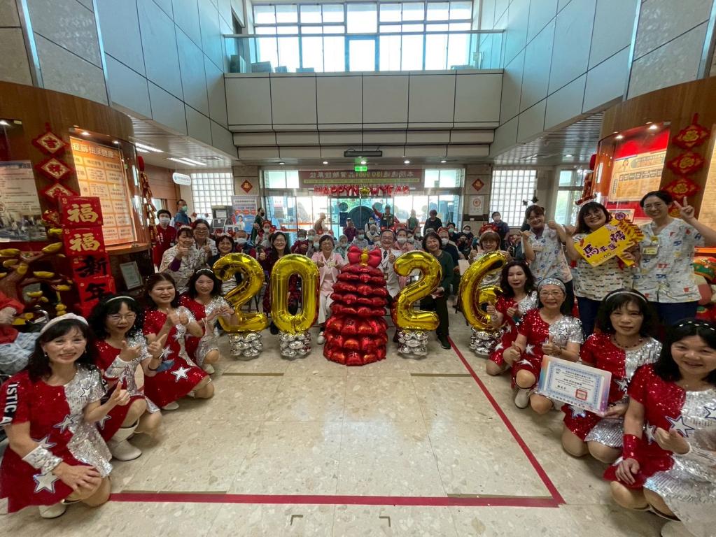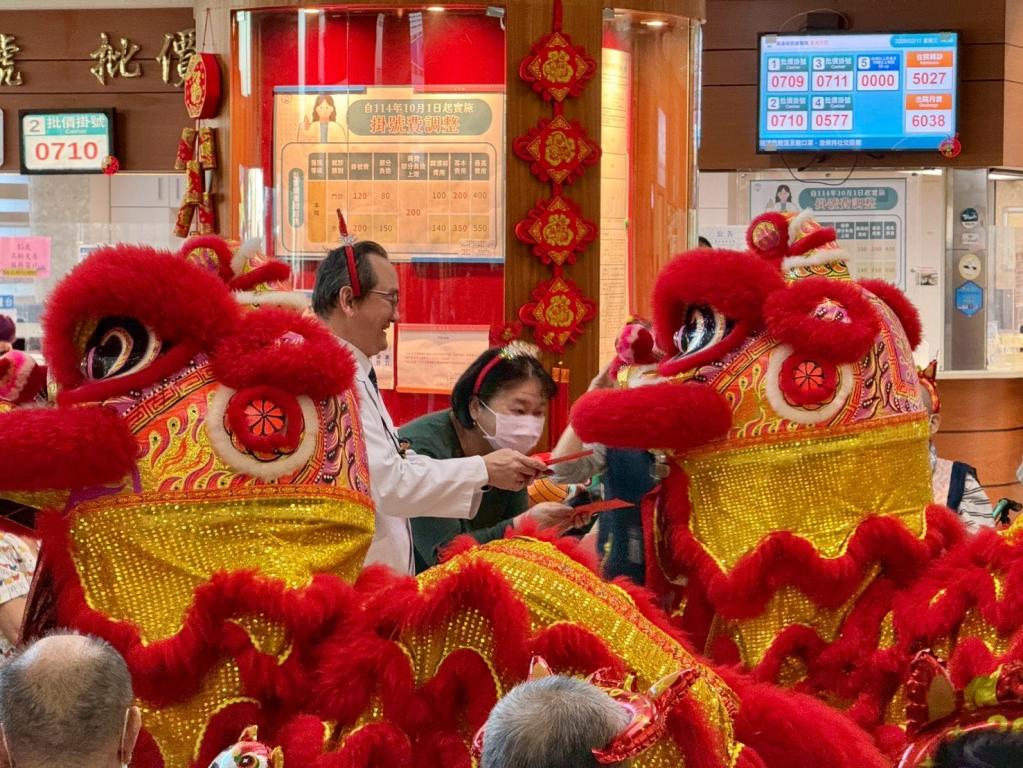緊接登場「舞步加冠」橋段將活動推向高潮,神秘嘉賓揭曉引發現場驚喜連連,由副院長周俐禎親自參與演出,手持「福.葫蘆」條幅起舞,象徵加官進祿、納福迎祥,為新年帶來吉慶祝願與祥瑞氣氛,也拉近與長輩間距離。