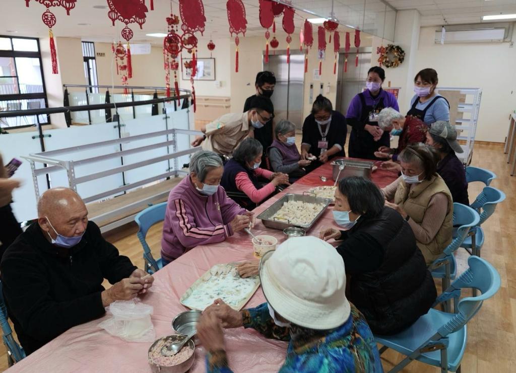 臺南榮家表示,透過包水餃活動結合生活訓練、手部運動與情感交流,讓長輩在熟悉年節體驗中活絡身心,感受「有年有節、有家有情」照護溫度,陪伴長輩在笑聲與祝福中迎接嶄新一年。(臺南榮家提供照片)