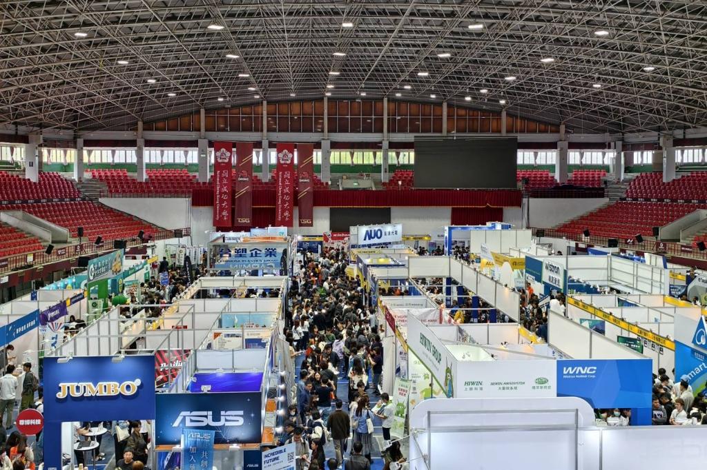 協力單位之一成大產學創新總中心,今年邀集12家企業會員參與徵才活動:友達光電、緯穎、聯詠科技、國巨、長興材料、ASML、漢民科技、日月光、貿聯國際、瑞昱半導體、錸恩帕斯與啟碁科技等各領域指標企業;不僅協助企業會員提升校園能見度,也為學生創造接軌產業更多可能性。