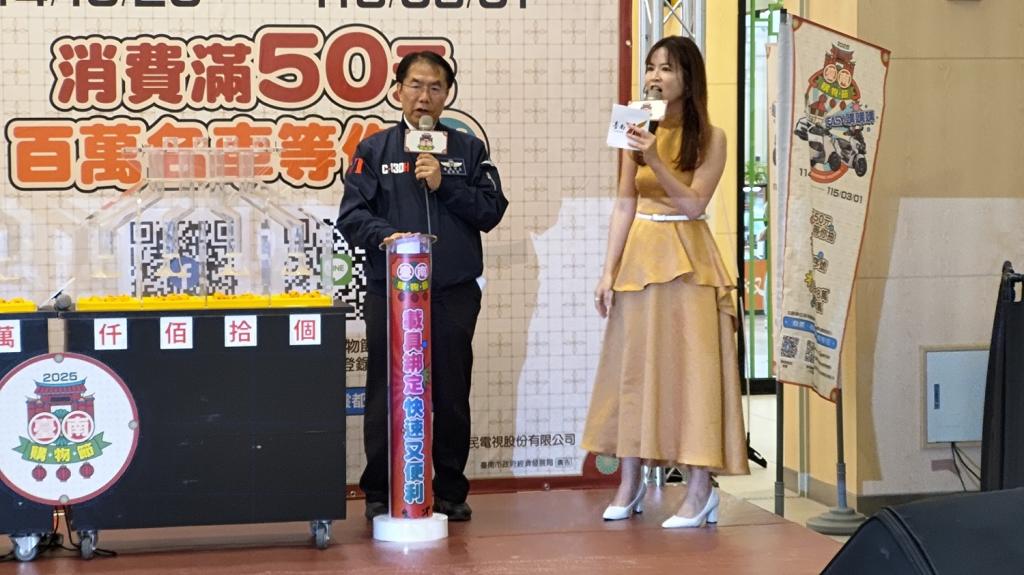 經發局表示,本屆購物節以「EASY購購購」為核心概念,全面升級活動規模與玩法,期間舉辦2場主題活動、5場月月抽、40場地推活動,並加碼週週抽、過年天天抽,讓好運隨時降臨;成功串聯近3,000家在地特約店家,從百貨商圈、量販通路到傳統市場與夜市攤位,將消費動能由單點擴散至整座城市,持續帶動整體經濟循環。(臺南市政府提供照片)
