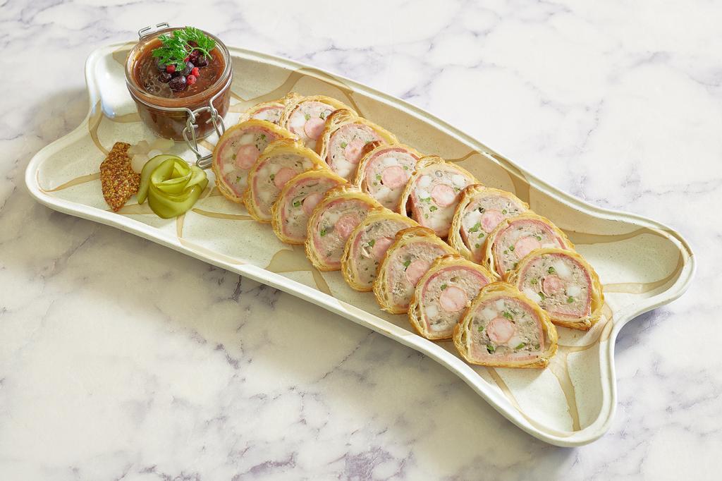 圖說:鉑麗安自助餐「歐洲經典主題自助餐」的 「法式豬肉派佐莓果醬」,酥香派皮與果醬酸甜形成細膩美味。