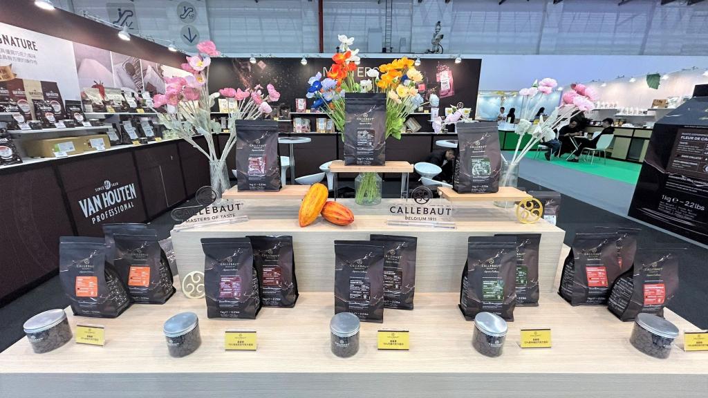 比利時嘉麗寶巧克力展示多款新品,包括70%花韻巧克力鈕扣、單一產區系列巧克力(75%坦尚尼亞、70%多明尼加、65%秘魯、72%委內瑞拉、40%迦納),並同時推出含22至24%可可脂的EXTRA BRUTE醇苦高脂可可粉,風味濃郁、應用多元。