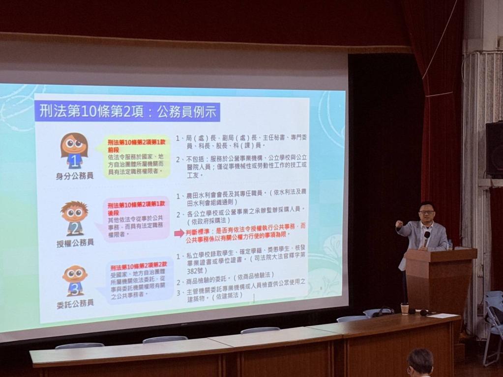 主任檢察官施家榮針對法紀防護、反詐騙及反毒教育等議題以實際案例說明公務執行可能涉及的廉政風險,提醒同仁在工作中應秉持依法行政與廉潔自持原則;同時分析近年常見詐騙手法,如假投資、網路購物詐騙及打工廣告陷阱等,並分享常見之毒品危害及以檢察官視角如何看待藥癮者,提醒同仁提高警覺,避免落入詐騙或毒品陷阱。