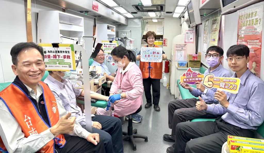 台南區處廖學智處長表示,每一份捐出熱血都代表一份善意,號召全體同仁在身體狀況許可下,挽起袖子一起來捐血,共同關懷社會。