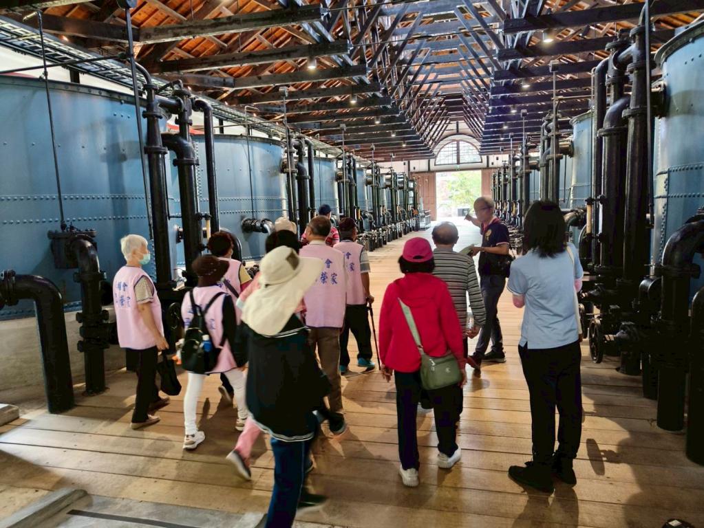 活動當天上午8時30分由輔導長組陳秀華帶領著長輩們,準時搭上榮家中巴,並帶著既期待又興奮快樂出團:這次微旅目的地是臺南市山上區「花園水道博物館」,長輩們到達園區後,導覽人員向長輩說明整個園區係以獨特水道歷史和裝置藝術聞名,這也是岡榮微旅團長輩第一次見到,過去曾是日據時代重要民生建設,也對於當時智慧感到嘖嘖稱奇,並紛紛把握難得機會拍照留念;長輩在參訪過程也頻頻向導覽員提問心中疑惑,園區工作人員也很有耐心地向長輩說明緣由。