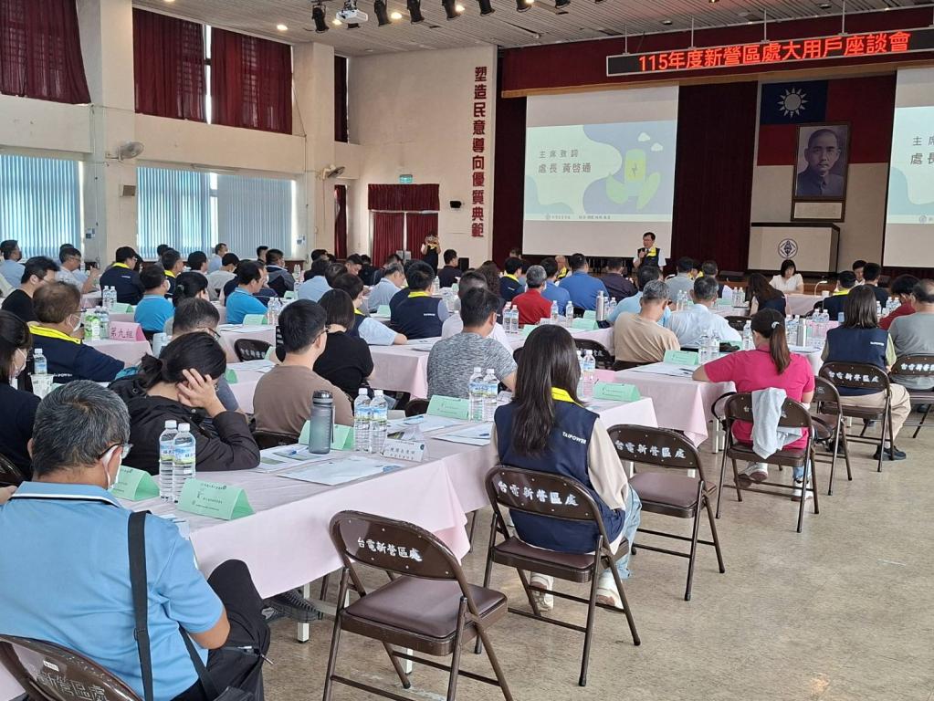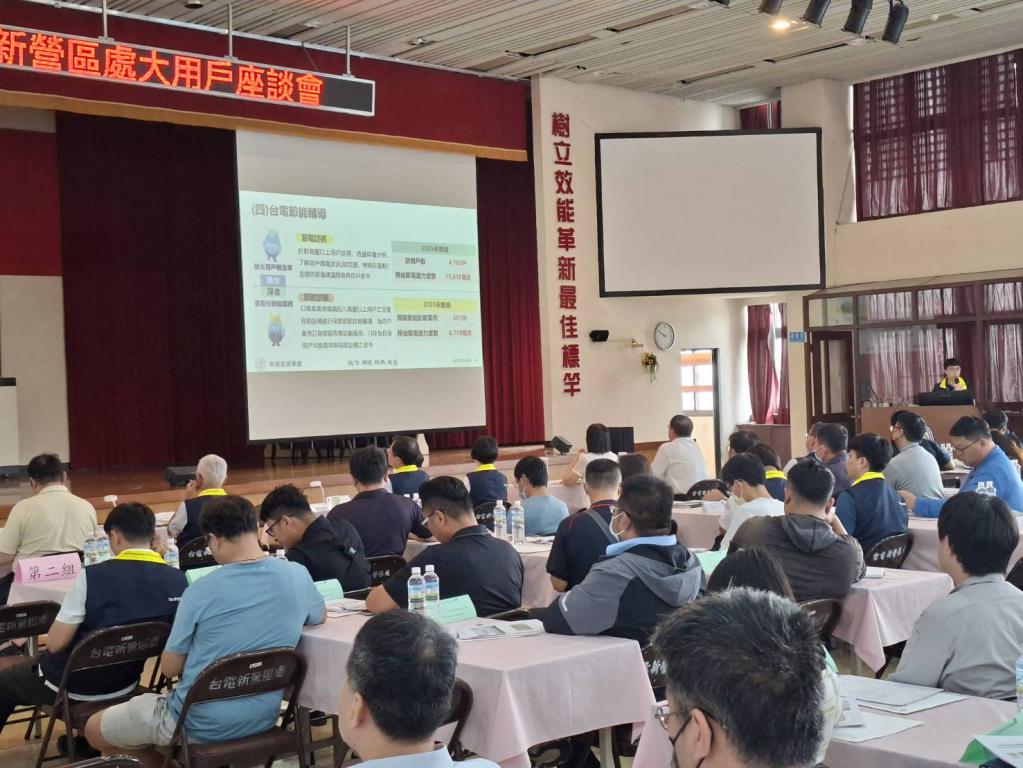 新營區處黃啓通處長表示,「節電是最好的能源」,提升用電效率就等於是提升企業競爭力,希望透過此次大用戶座談會,傳達用戶全面瞭解各項節約能源撇步及政府提供之節能補助,協助用戶因應國際環保之低碳趨勢;台電新營區處於114年9月1日成立節能服務課,主要辦理業務為協助用戶盤點空調及空壓等耗能設備,並進一步以專業儀器協助用戶檢測能源效率,以協助用戶找出耗電來源,通盤檢討以後提供改善方式,讓企業每一度電都用在對的地方,歡迎高壓以上用戶向本處預約節能診斷之服務。
