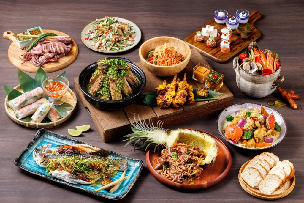 主打多國料理與高CP值的鉑麗安全日餐廳,主廚陳永儒以「東南亞美食」為主軸升級自助餐檯,集結越式生春捲、泰式火山排骨、綠咖哩蟹、沙嗲雞肉串與印尼炒飯等經典南洋菜色,透過酸、辣、香的味覺層次,強化整體餐檯吸引力。